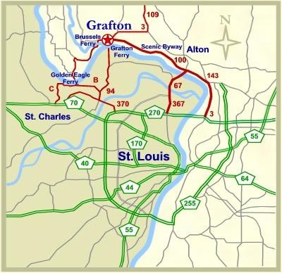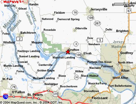 Going north from historic Alton IL, proceed approximately 15 miles on the Great River Road (Rte 100). Turn right on Grafton Hills Drive. Just 5 minutes from Grafton Interstate Ferry.